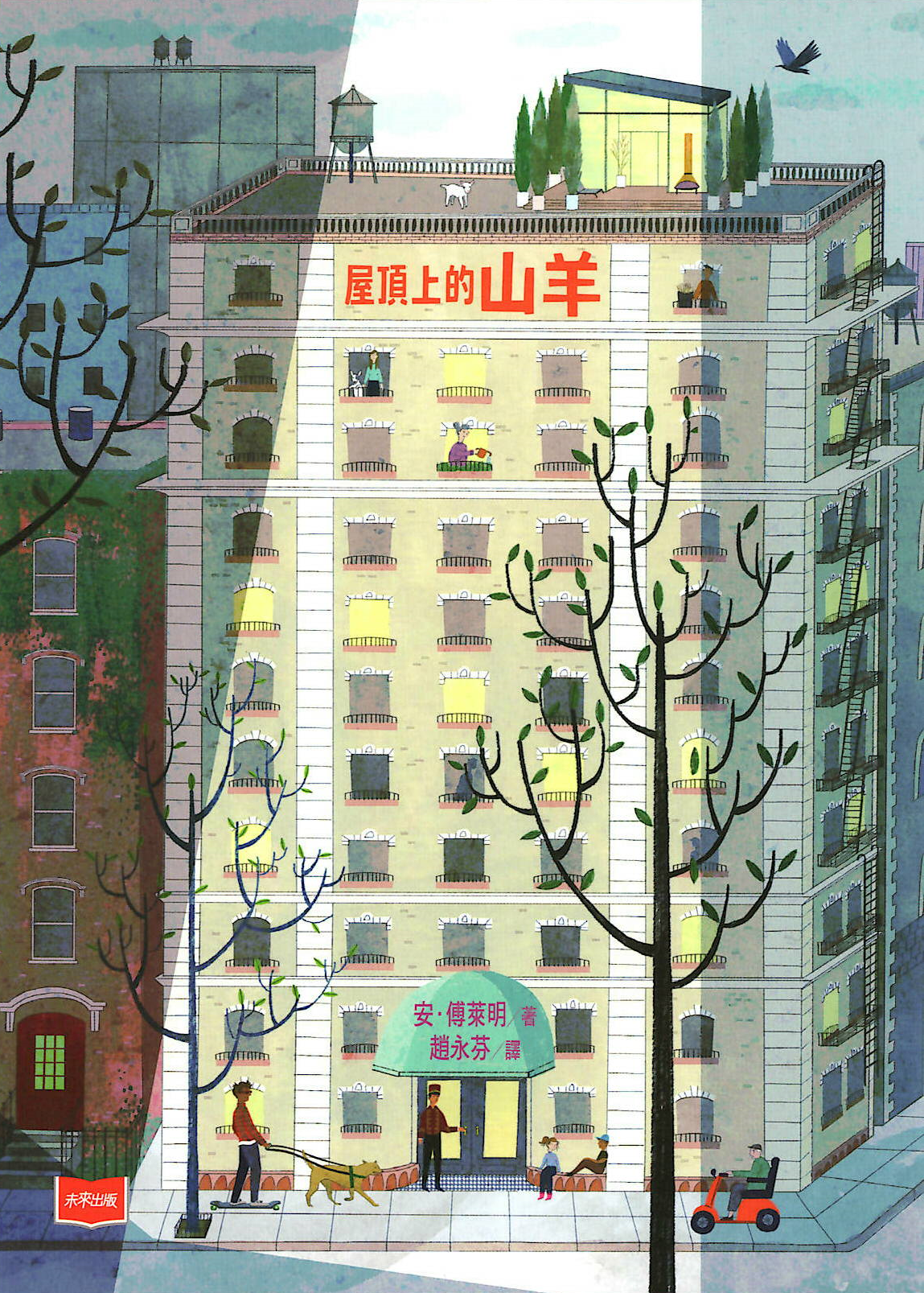 琪德一家人為了照顧親戚的狗,搬進紐約一棟大樓暫住。那天早晨,她剛抵達這座喧囂繁忙的城市,恍惚間,似乎在大樓屋頂看見一小團白雲。人們說有隻山羊住在這棟大樓,但這怎麼可能呢?真是太奇怪了,即使以紐約的標準而言……